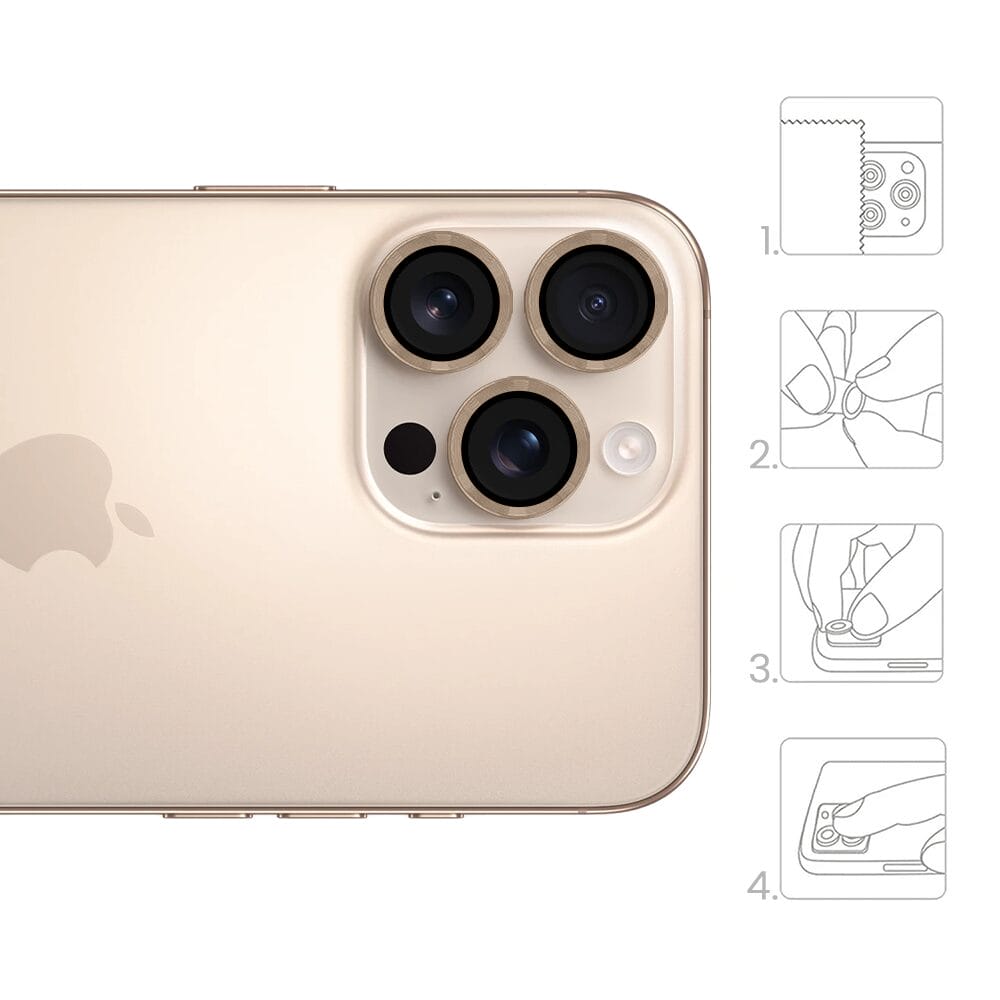 Metalowa osłona obiektywu aparatu ze szkła hartowanego 9H do iPhone 16 Pro, 1 zestaw, tytan pustynny