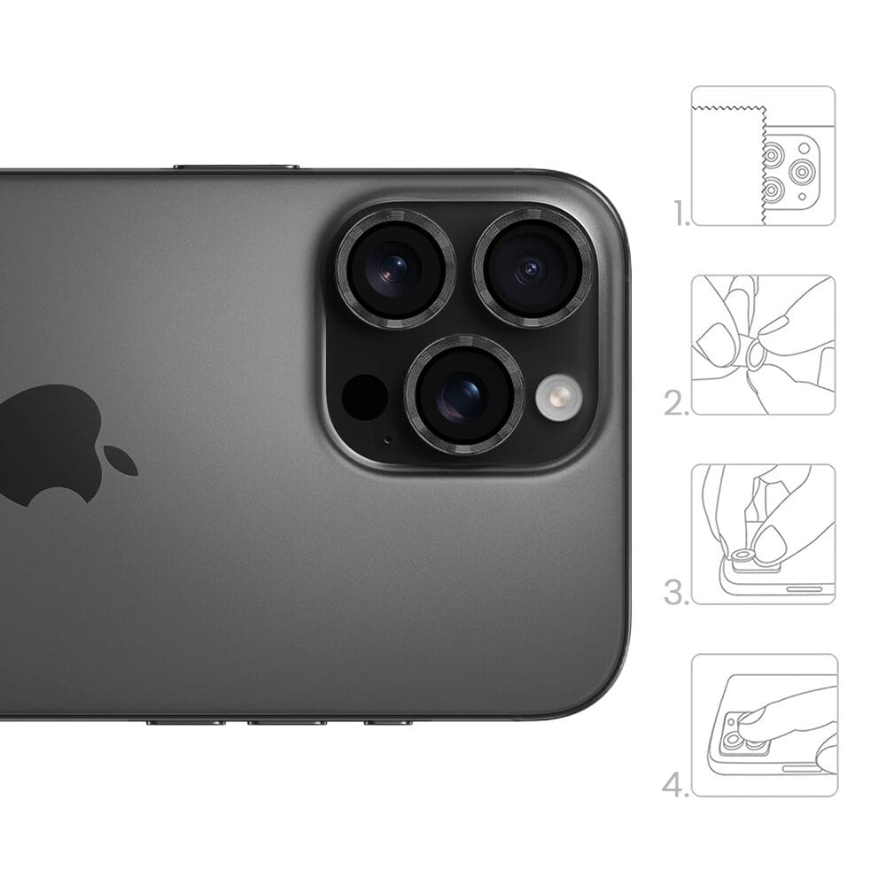 Metalowa osłona obiektywu aparatu ze szkła hartowanego 9H do iPhone 16 Pro Max, 1 zestaw, czarna