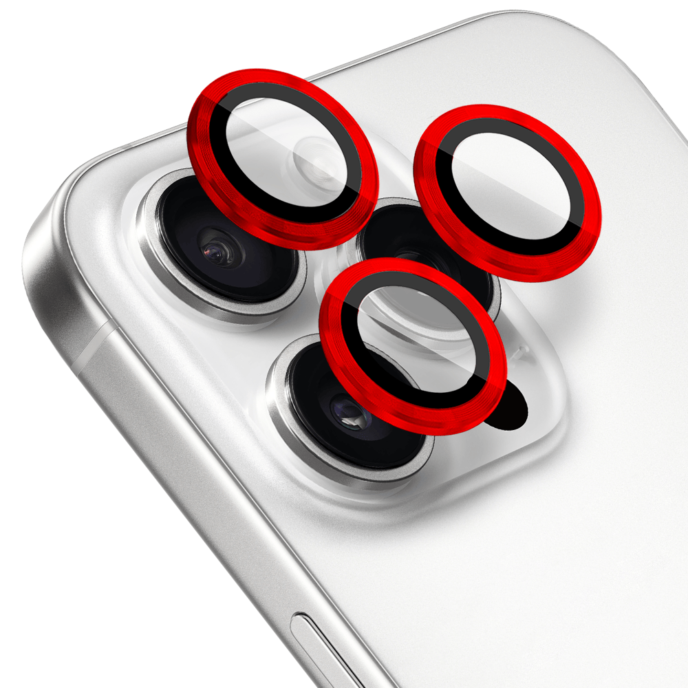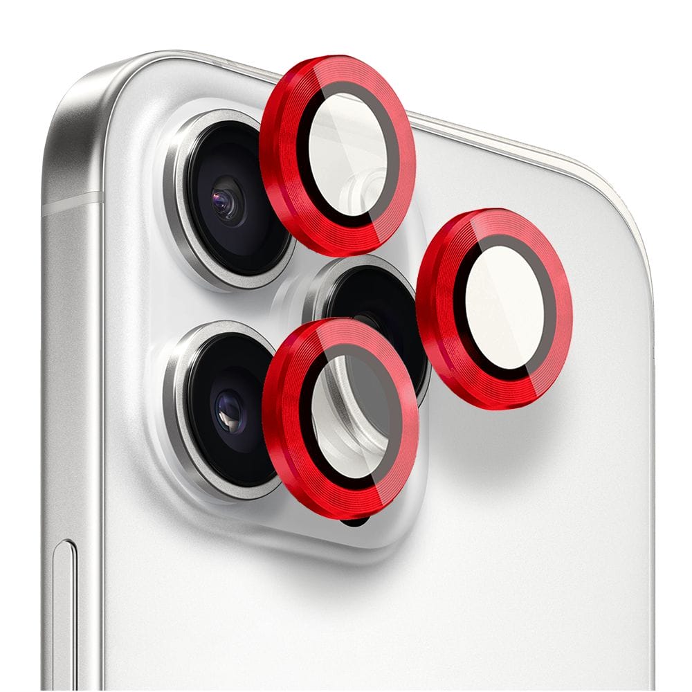 Metalowa osłona obiektywu aparatu ze szkła hartowanego 9H do iPhone 16 Pro Max, 1 zestaw, czerwona