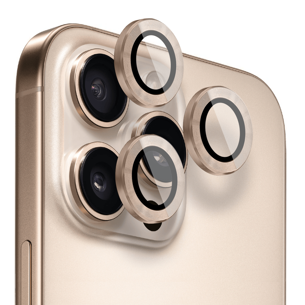 Metalowa osłona obiektywu aparatu ze szkła hartowanego 9H do iPhone 16 Pro Max, 1 zestaw, tytan pustynny