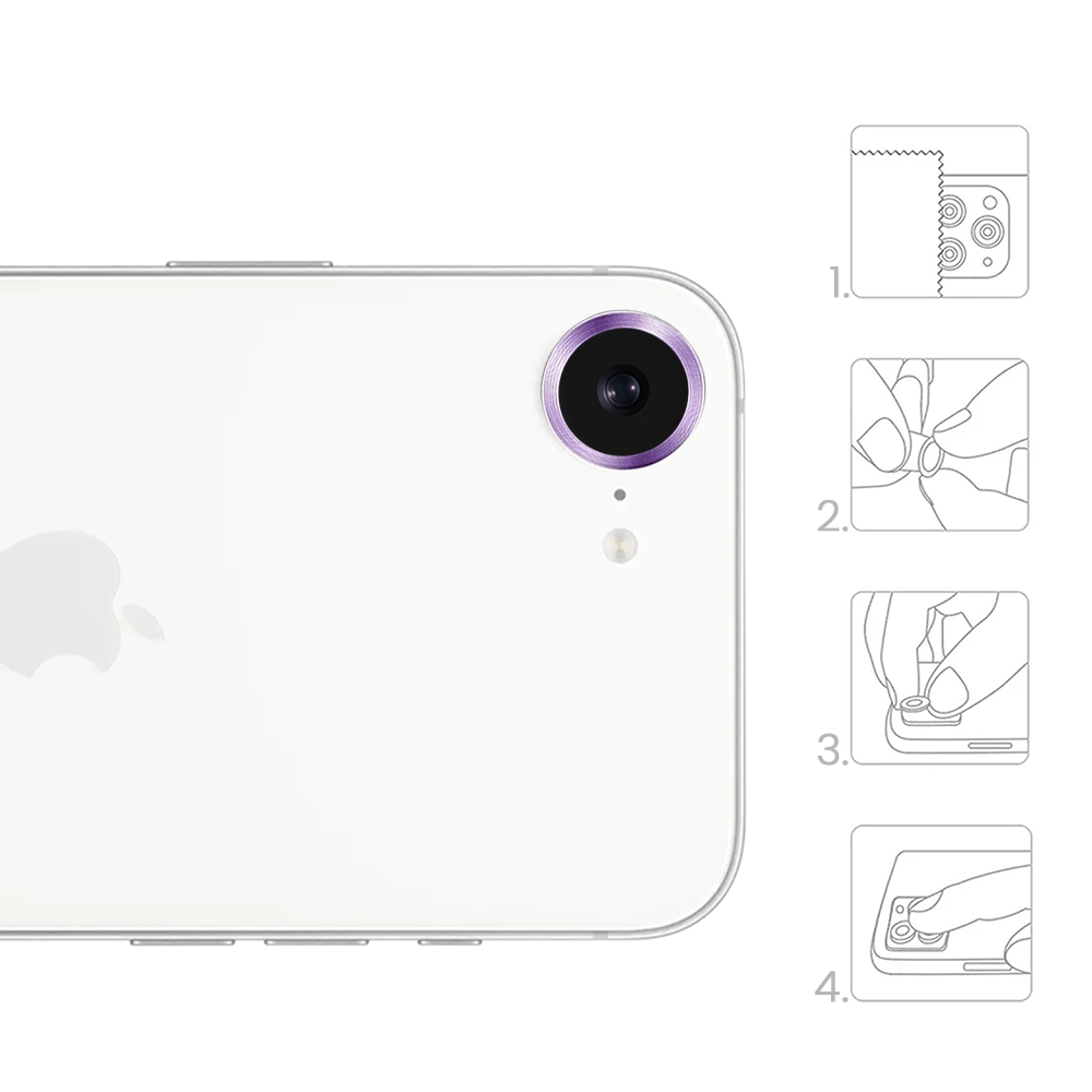 Metalowa osłona obiektywu aparatu ze szkła hartowanego 9H do iPhone 16e, 1 zestaw, głęboka purpura