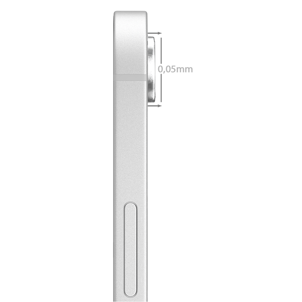 Metalowa ramka wykonana z wysokiej jakości eleganckiego, anodyzowanego aluminium otacza hartowane szkło o twardości 9H, tworząc solidną warstwę ochronną dla soczewek jak i całego aparatu smartfona. Dzięki temu obiektywy zachowują perfekcyjny wygląd nawet przy intensywnym użytkowaniu.