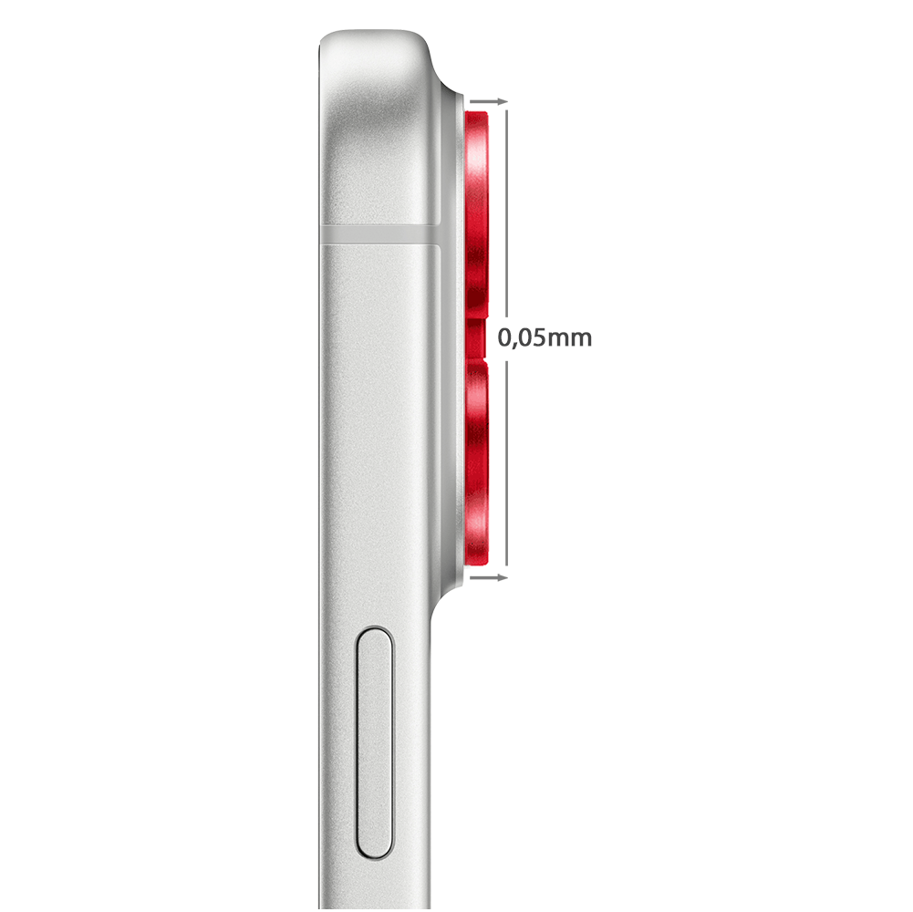 Metalowa ramka wykonana z wysokiej jakości, anodyzowanego aluminium otacza hartowane szkło o twardości 9H, tworząc solidną warstwę ochronną dla soczewek i całego aparatu smartfona. Dzięki temu obiektywy zachowują perfekcyjny wygląd nawet przy intensywnym użytkowaniu. Smukła forma szkieł sprawia, że są kompatybilne z większością etui i nie wpływają na estetykę telefonu.