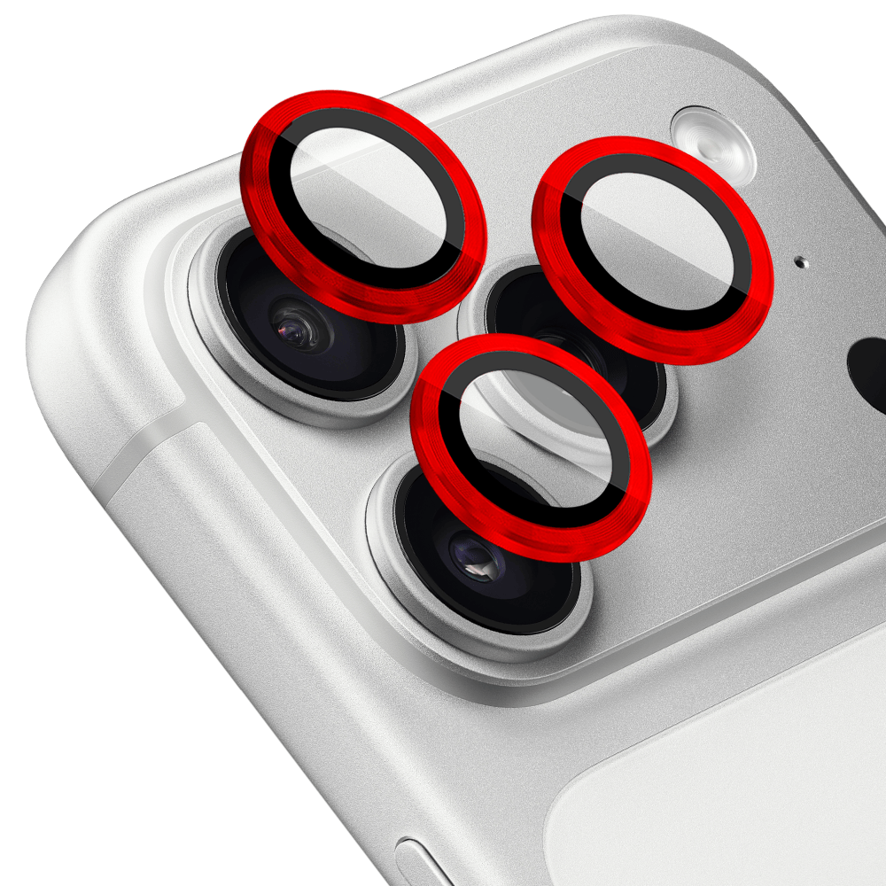 Metalowa osłona obiektywu aparatu ze szkła hartowanego 9H do iPhone 17 Pro, 1 zestaw, czerwone
