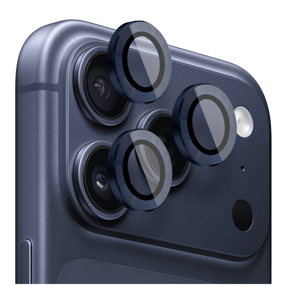 Metalowa osłona obiektywu aparatu ze szkła hartowanego 9H do iPhone 17 Pro, 1 zestaw, granatowa