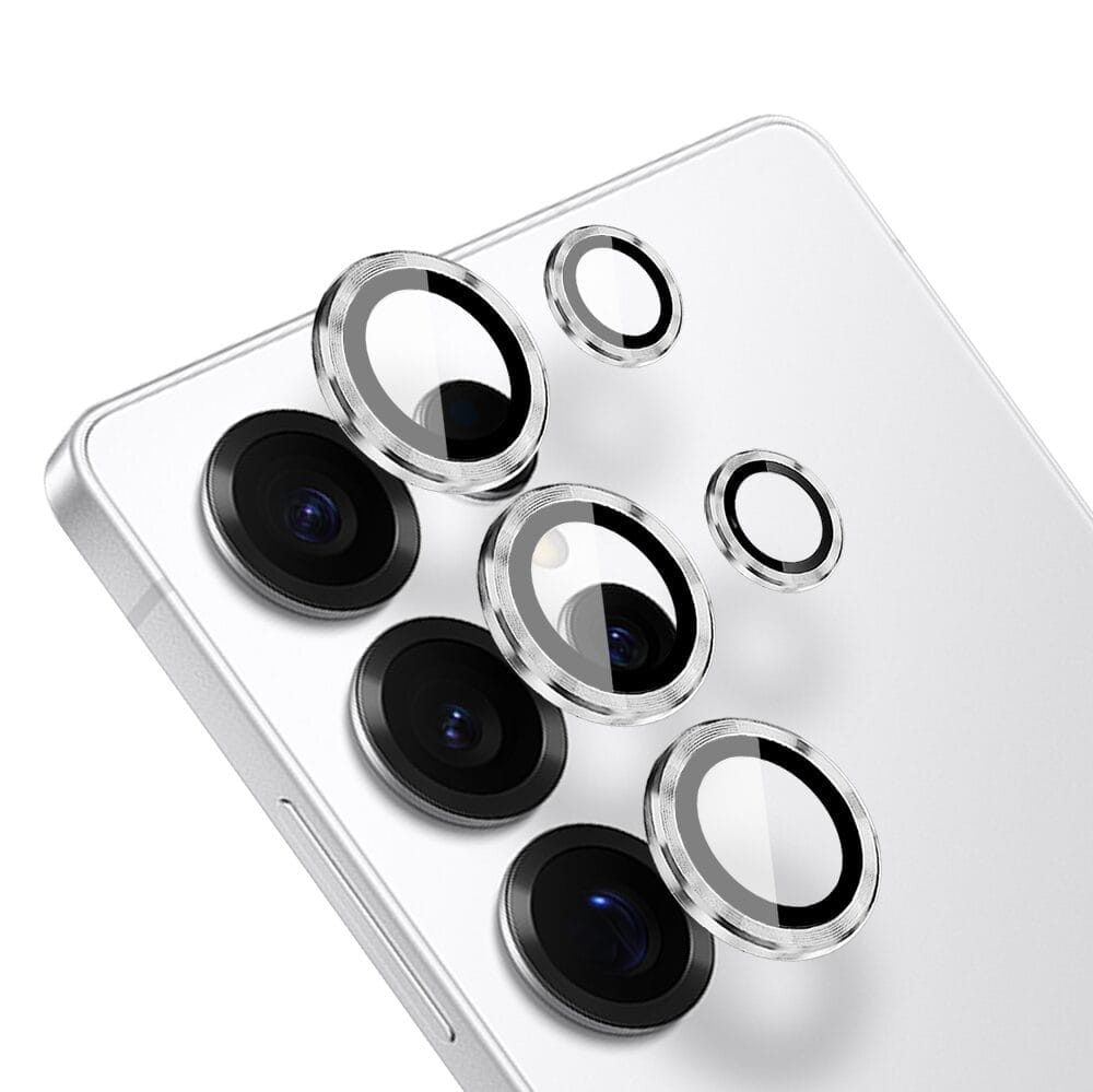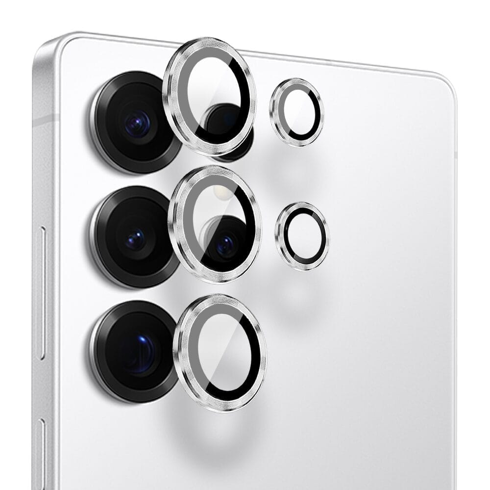 Metalowa osłona obiektywu aparatu ze szkła hartowanego 9H do Samsung Galaxy S25 Ultra, 1 zestaw, srebrna